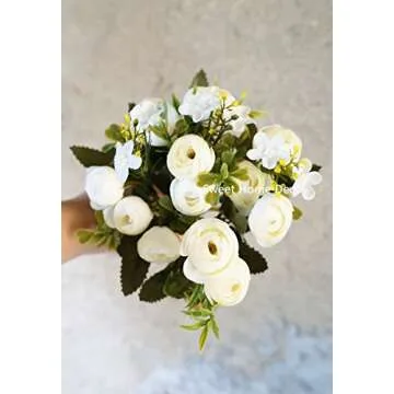Sweet Home Deco 11'' Silk Baby Ranunculus Artificial Flower Bush Small Flower Bush Set of 2 Wedding/Home Decorations (White)
