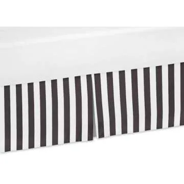 Show moreTransform your baby's nursery into a chic haven with the Sweet Jojo Designs Black and White Stripes Crib Bed Skirt Dust Ruffle. This elegantly designed bed skirt adds a sophisticated touch while perfectly coordinating with the Paris Collection bedding sets. Featuring a stylish brushed microfiber material and a classic black and white stripe print, this versatile piece not only enhances your crib's aesthetic but also provides a clean and polished finish.