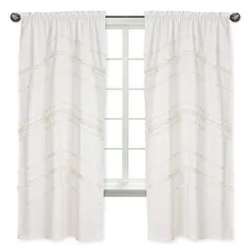 Show moreIntroducing the enchanting Sweet Jojo Designs Bohemian Boho Chic Ivory Macrame Tufted Tassel Decorative Window Treatment Panels, a perfect blend of style, elegance, and functionality for your living spaces. Crafted from 100% soft, breathable cotton, these exquisite window panels measure a generous 42 inches by 84 inches, making them ideal for standard rods up to 0.75 inches in diameter. The unique textured hand-tufted fringe trim in a stunning oversized chevron pattern not only adds a charming touch but also enhances the visual appeal of any room. Whether you're aiming for a cozy, rustic farmhouse feel or a chic bohemian vibe, these curtains are the ultimate addition to achieve your desired aesthetic.