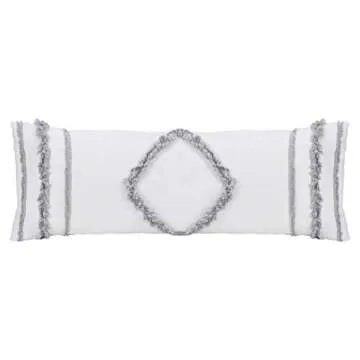 Sweet Jojo Designs Bohemian Boho Chic White and Grey Macrame Tufted Tassel Accent Decorative Couch Long Throw Zipper Body Pillow Cover Case 54x20 Gray Textured Minimalist Cotton Fringe Farmhouse Decor