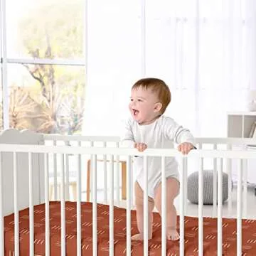 Transform your nursery into a cozy, stylish haven with the Sweet Jojo Designs Rust and White Boho Mudcloth Fitted Crib Sheet. Crafted from plush brushed microfiber, this fitted sheet exudes both comfort and sophistication. Its distinctive bohemian design features a warm rust orange and white tribal-inspired hatch print that brings a touch of modern elegance to any nursery. Designed to fit standard cribs and toddler beds perfectly, it effortlessly blends into your aesthetic,...