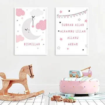 Show more Introducing the Sweet Pink Islamic Muslim Pictures Nursery Decor, a stunning canvas painting poster print specifically designed to bring warmth and serenity to your child’s room. Measuring an impressive 40x60cm, this artwork features beautiful Islamic motifs and vibrant colors that align perfectly with any nursery or baby room theme. What sets this wall art apart is its ability to combine cultural significance with an aesthetic appeal that resonates well with both children and parents. Crafted with love, this decor serves as a meaningful addition to your home while enhancing the space it occupies.