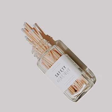 Sweet Water Decor 4" Grey Safety Matches - Glass Jar | Approx. 60 Matches | Matchsticks | Home Decor | Candle Accessories | Long Matches | Apothecary Jars for Fireplace | Housewarming Gift