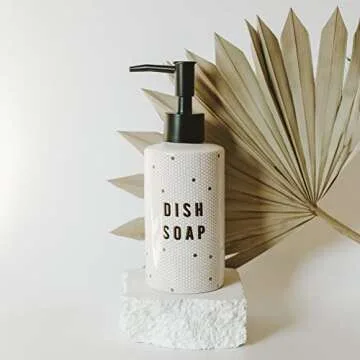 Show moreIntroducing the Sweet Water Decor Gold Tile Dish Soap Dispenser – a charming and functional addition to any kitchen or bathroom space. This stunning dispenser features a white and gold honeycomb tile design that seamlessly merges rustic and modern aesthetics, making it an ideal piece for enhancing your home decor. Measuring at an ideal 8.5 oz, it is perfect for refilling with your favorite liquid soap, ensuring **no waste** and a chic appearance on your countertop. Crafted with a durable black matte metal twist-on pump, this dispenser not only looks fantastic but also provides robust functionality, preventing leaks and allowing a secure application every time.