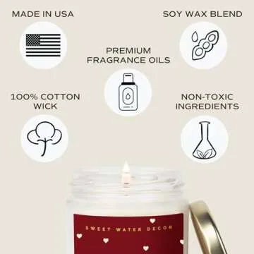 Show more Illuminate your space with the Sweet Water Decor Love You Scented Candle, a stunning blend of ambiance and scents designed to enhance your most cherished moments. This magnificent 9oz candle, crafted from 100% soy wax and infused with luxurious fragrance oils, delivers a unique aroma profile that features fresh lavender, geranium, warm mahogany, and earthy teakwood. Encased in a sleek clear jar with an elegant gold lid, it not only elevates the atmosphere but also serves as a striking decor piece in any setting. Perfect for cozy nights or grand romantic gestures, this candle effortlessly captures the essence of love and warmth.