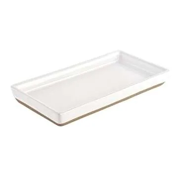 DETAILS - Our glossy white stoneware tray is 8.7 x 4.3 x .8" making it easy to fit almost anywhere.