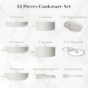 Show more Introducing the Sweetcrispy 12 Pcs Pots and Pans Set, your ultimate kitchen companion designed for modern-day chefs! This premium cookware set stands out with its non-stick granite coating that not only makes cooking a breeze but also ensures healthier meal preparation by reducing the need for oil. The aesthetically pleasing beige finish adds a touch of elegance to any kitchen decor, making it a perfect gift for cooking enthusiasts. With 12 essential pieces, including pots, pans, and detachable handles, this set offers versatility and functionality to elevate your culinary skills. Whether it's simmering soup or sautéing veggies, enjoy delightful cooking experiences without the hassle of sticking or scrubbing, ensuring quick and effortless clean-up! Get ready to transform your cooking routine with this functional yet stylish cookware set.