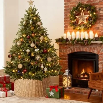 Sweetcrispy 27in Christmas Tree Collar - Easy Assembly & Eco-Friendly Wicker Design