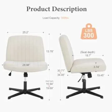 Sweetcrispy Criss Cross Chair Legged, Armless Office Desk Chair No Wheels, Swivel Vanity Chair, Height Adjustable Wide Seat Computer Task Chair, Fabric Vanity Modern Home Chair Beige