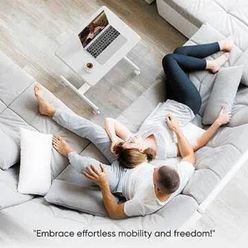 Sweetcrispy Mobile Small Stading Desk - Sit Stand Desk, Portable Rolling Laptop Desk with Lockable Wheels, Computer Workstations, Adjustable Height, White