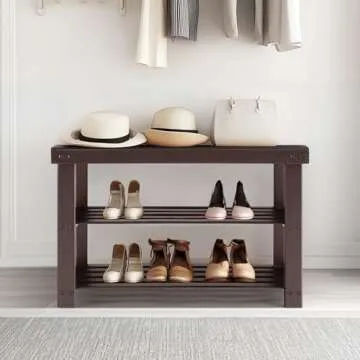 Sweetcrispy Shoe Rack Bench, 3-Tier Bamboo Entryway Storage Organizer, 286lb Capacity, Shoes Stand for FrontDoor Entrance, Bedroom, Living Room, Bathroom, Balcony, 11.3 x 27.6 x 17.8 Inches, Brown