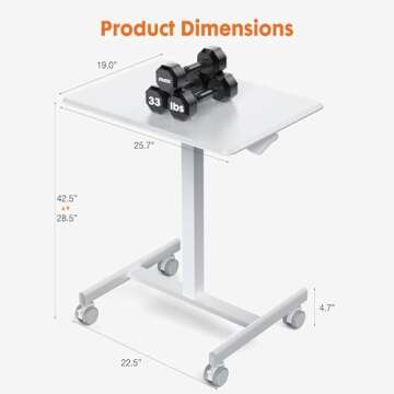 Sweetcrispy Small Mobile Rolling Standing Desk - Overbed Table, Teacher Podium with Wheels, Adjustable Work Table, Rolling Desk Laptop Computer Cart for Home, Office, Classroom - White