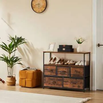 This versatile dresser boasts five spacious fabric drawers, making organization a breeze. The three upper drawers are perfectly sized for your everyday essentials, while the two larger lower drawers offer ample space for less frequently used items, ideal for clothing, toys, or even your DVD collection. Remarkably lightweight yet surprisingly durable, these fabric drawers allow you to pull them out effortlessly without the risk of injury, making it a safe option for kids’ rooms.