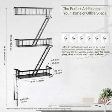 SweetSage Fire Escape Wall Shelf - New York Decorative Ladder Shelf, Wall Art Floating Shelf Black Metal Shelves for Bedroom, Home Office Storage and Display (3-Tier)