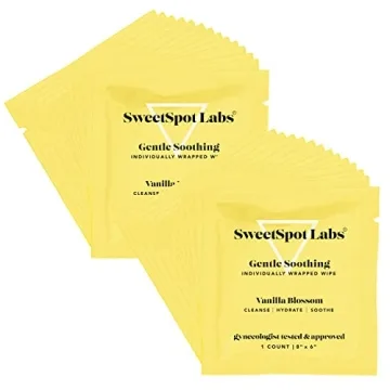 Show more Discover the ultimate self-care essential with the SweetSpot Labs On-The-Go pH Balanced Feminine Wipes. These wipes, infused with the delightful scent of Vanilla Blossom, provide a refreshing cleanse that goes beyond everyday hygiene. Perfectly convenient for those busy moments or post-exercise refreshment, each pack holds 30 individually wrapped wipes designed for vulvar skin and your on-the-go lifestyle. Crafted with gentle, pH-balancing ingredients, they are ideal for keeping you feeling fresh, confident, and revitalized wherever you are. Enjoy the soothing comfort of chamomile, cucumber, and aloe vera extracts while being reassured by their gynecologist-tested and approved formulation.
