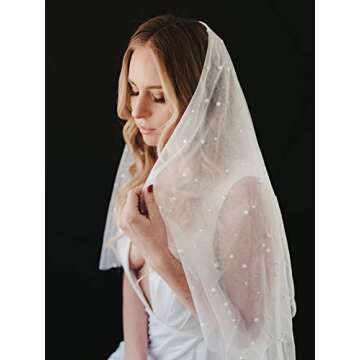 Show moreStep into your dream wedding day with the SWEETV 2 Tier Pearl Wedding Bridal Veil, a breathtaking accessory that adds an ethereal touch to any ensemble. Measuring 60 cm (23 inches) for the first tier and 103 cm (40 inches) for the second, this veil is crafted from luxurious soft tulle and features a delicate finish that flows elegantly as you walk down the aisle. The veil is adorned with exquisite pearls, giving it a sophisticated look that enhances the beauty of your wedding dress.