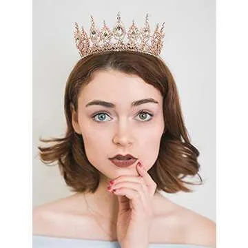 SWEETV Royal Queen Crown, Wedding Tiara for Bride, Rhinestone Tiaras and Crowns for Women, Costume Headpiece for Birthday Cosplay Party Celebration,Rose Gold