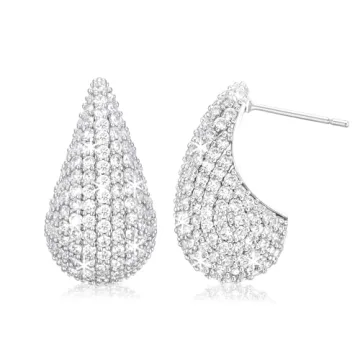 Elevate your style with the SWEETV Silver Chunky Hoop Earrings, a perfect blend of elegance and contemporary fashion. These earrings are meticulously crafted from high-quality copper with a lustrous silver plating, ensuring durability and a premium finish. The chic teardrop design, adorned with sparkling cubic zirconia, captures the essence of modern jewelry trends while offering versatility for any outfit. Lightweight and designed for comfort, these earrings promise an effortless all-day wear experience,...