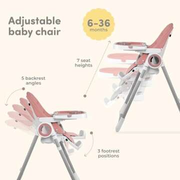 Sweety Fox Baby High Chair Adjustable to 7 Different Heights - Pink Baby Chair - Silla para Comer de Bebe - Foldable High Chairs for Babies and Toddlers