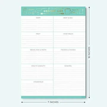 Show more Keep your grocery shopping organized and stylish with the Sweetzer & Orange Grocery List Magnet Pad for Fridge. This beautifully designed 7x10” notepad features elegant teal and gold foil accents, ensuring your kitchen remains chic while you plan. Unlike ordinary shopping list notepads that force you to jot down items haphazardly, this pad allows you to categorize your grocery needs effortlessly. With clearly labeled sections, you can confidently head into the supermarket knowing you have everything covered.
