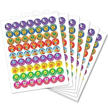 Sweetzer & Orange Reward Stickers for Teachers, 1008 Decals for Kids in 9 Designs, 1 Inch School Tags on Sheets, Classroom Teacher Supplies, Potty Training Badges and Motivational Chart