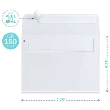 Show more Introducing the Sweetzer & Orange White Self Seal Envelopes, an essential addition to any organization or celebration! Whether you're looking to send out wedding invitations, holiday cards, or business mail, these premium 5x7 (True 5.25 x 7.25 inches) envelopes bring a blend of style and practicality. Nestled in a sturdy, eye-catching Tiffany blue box, these envelopes not only keep your stationery in pristine condition but also highlight your attention to detail. With an impressive weight of 150gsm, they are thicker than your average envelope, ensuring that your important documents and beautiful photos are well-protected and never seen through.