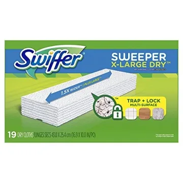 Show moreExperience a smarter way to keep your floors spotless with the Swiffer Sweeper Dry Sweeping Pad Multi Surface Refills for X-Large Dusters. These powerful unscented refills come in a convenient pack of 19 and are engineered to tackle everything from dog hair to dust bunnies, making your cleaning routine a breeze. The deep textured ridges are designed to TRAP + LOCK dirt, dust, hair, and allergens, including common inanimate allergens like cat and dog dander. With their thick construction, these pads easily conform to the surface of your floors and grout lines, ensuring that not a speck of dirt goes unaddressed. Perfect for hardwood, tile, and vinyl floors, these high-performing pads are your ultimate cleaning companions.