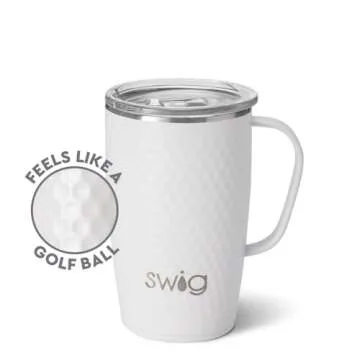 Swig Life 18oz Travel Mug, Insulated Tumbler with Handle and Lid, Cup Holder Friendly, Dishwasher Safe, Stainless Steel, Travel Coffee Cup (Golf Ball)