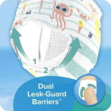 Featuring Dual Leak-Guard Barriers, these diapers fit snugly around your baby’s legs, effectively containing messes, so you can focus on the fun instead of worrying about accidents. The 360˚ stretchy waistband ensures that the diaper fits like swimwear, moving with your child's every move, whether splashing around in the kiddie pool or diving into the waves.