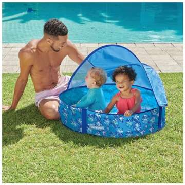 Swimways Elite Pop-Up Above Ground Pool, Baby Pool with Canopy & Carrying Case, Foldable Kiddie Pool for Ages 9-24 Months, Measures 32", Blue