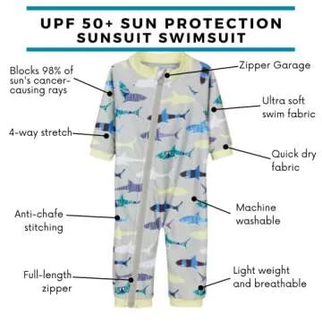 Introducing the SwimZip Little Boy Long Sleeve Sunsuit with UPF 50 Sun Protection, your ultimate swimwear solution for keeping your little one safe from the sun's harmful rays while enjoying beach days and pool parties. Expertly crafted to provide complete sun protection, this swimsuit features SPF 50+ (UPF 50+) fabric, which blocks out 98% of UVA and UVB rays. Parents can finally relax and take a break from the constant sunscreen battles, knowing their child is covered from...
