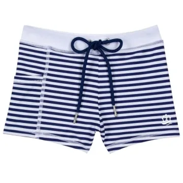 SwimZip Shorties - Adorable UPF 50+ Swim Shorts for Kids - Navy Stripe