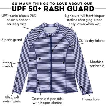 Introducing the SwimZip Women's Long Sleeve Rash Guard with Pockets & UPF 50+ Sun Protection, the ultimate companion for your sunny adventures! This stylish rash guard not only enhances your beach wardrobe but also provides the highest level of protection against harmful sun rays. Certified by the Skin Cancer Foundation, you can trust that it meets rigorous standards for sun safety, allowing you to enjoy your time in the sun without worries. With built-in sun protection that blocks 98% of...