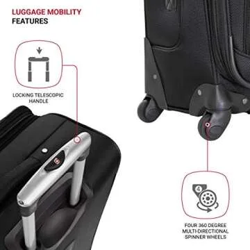 The suitcase is designed with 360-degree multi-directional spinner wheels for easy maneuvering in crowded spaces.