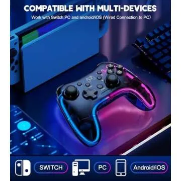 Switch Controller Compatible with Switch/Lite/OLED Controller, Switch Pro Controller With RGB Breathing LED, Switch Controllers Remote Supports Multi-Platform&App with Turbo, Wake-up Function
