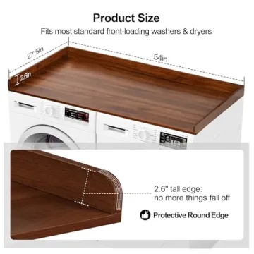 - Edge Rail Protection: Features a 2.6" tall edge to prevent items from slipping off, safeguarding your laundry space from spills and accidents.