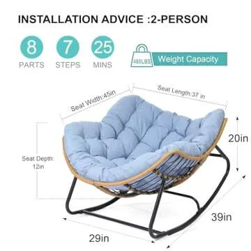SWITTE Outdoor & Indoor Rocking Chair - Rattan Wicker Lounge Chair for Bedroom, Living Room, Porch, Garden, Lawn - Blue