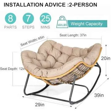 SWITTE Outdoor Rocking Chair, Patio Egg Rocking Chair, Indoor Papasan Chair, Rattan Wicker Lounge Chair, Modern Royal Chair for Bedroom, Living Room, Porch, Garden, Lawn-Beige