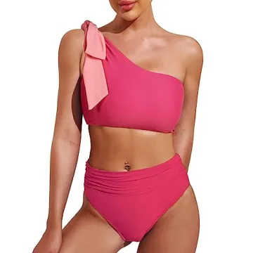 Show moreIntroducing the stunning Swmmer Liket Women High Waisted Bikini One Shoulder Swimsuit, a two-piece bathing suit that beautifully blends style and functionality. Crafted from a premium blend of 82% polyester and 18% elastane, this swimsuit promises comfort and durability. The silky soft fabric is breathable, quick-drying, and wrinkle-free, making it perfect for a day at the beach or lounging poolside. This piece features an elegant one-shoulder design with a removable bowknot accent, providing a modern twist to your swimwear collection.