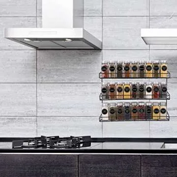 Show moreTransform your storage solutions with the SWOMMOLY 2 Pack Wall Mount Spice Racks. These elegantly designed 3-tier storage shelves not only enhance the aesthetics of your kitchen but also bring a high level of functionality. Perfect for organizing jars, nail polish bottles, or toiletries, these organizers allow you to save space while keeping your essentials within easy reach. Crafted from quality steel, they feature a sleek black finish that seamlessly blends into various decor styles, ensuring that you don't have to compromise on style for practicality.