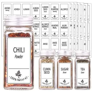 SWOMMOLY 36 Glass Spice Jars with 806 White Spice Labels, Chalk Marker and Funnel Complete Set. Square Bottles 4 oz Empty Spice Containers, Airtight Cap, Pour/sift Shaker Lid