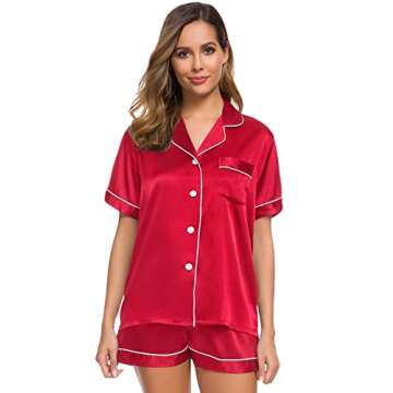 SWOMOG Women Silk Satin Pajamas Set - Short Sleeve Sleepwear for Elegance and Comfort