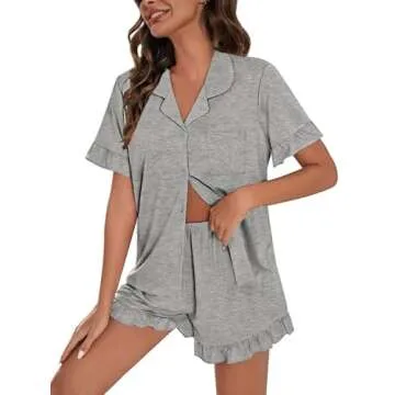 Designed with a cute and casual aesthetic, this pajama set features a relaxed style adorned with a short sleeve and ruffle hem design, which adds an adorable touch. The classic notch collar and complete button design ensure that the set is easy to put on and take off, making bedtime feel effortless. Additionally, the elastic waistband on the pajama pants promises a fit that moves with you, offering freedom and comfort as you drift off to sleep.
