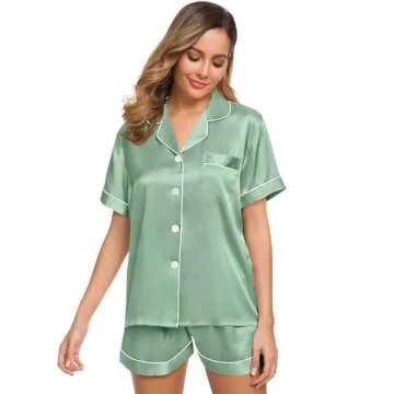 SWOMOG Womens Silk Satin Pajamas Set Short Sleeve Sleepwear Button Down Top and Shorts Loungewear 2 Piece Pjs Set XS-3XL