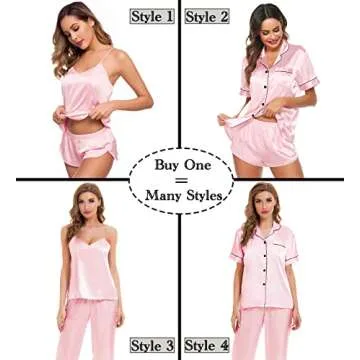 SWOMOG Womens Silk Satin Pajamas Sets 4pcs Sleepwear Sexy Cami Shorts Set and Button Down Short Sleeve Pjs Loungewear Pink X-Small