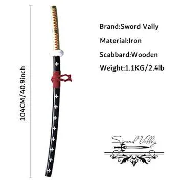 Sword Valley Trafalgar Law Sword - Yellow 40.9″ - Cosplay Prop Anime Katana Samurai Sword - Anime Original Texture Carbon Steel Blade Carving Symbol - Handle Absorbs Sweat and Prevents Slipping