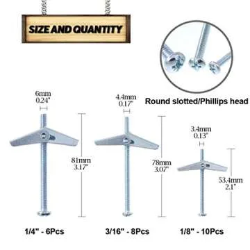 Swpeet Assorted 24 Pcs Toggle Bolt and Wing Nut Kit for Hanging Heavy Items on Drywall - 1/8 Inch, 3/16Inch, 1/4Inch