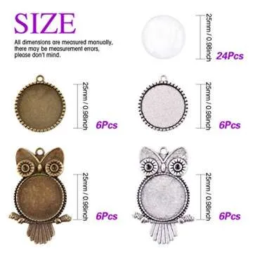 Show moreUnleash your creativity with the Swpeet Pendant Trays Kit, a magnificent collection designed specifically for jewelry makers and DIY enthusiasts. This versatile kit includes a wealth of options—specifically, 12 uniquely crafted Bronze Owl pendant trays and 12 Antiqued Silver Owl pendant trays, alongside an additional 12 Bronze Round Tree Bezel Pendants and 12 Antiqued Silver Round Tree Bezel Pendants. With a total of 48 pieces, the possibilities for crafting stunning, personalized jewelry are endless. Dive into this enchanting world, where your imagination can run wild! The trays are perfect for showcasing colorful gems, photographs, or your favorite resin projects, empowering you to create one-of-a-kind pieces that reflect your unique style.
