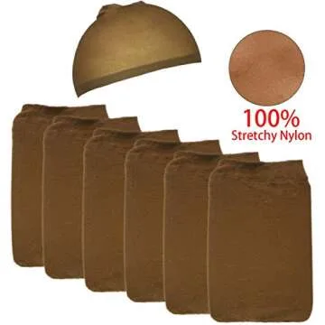 SWS 24pcs Brown Stocking Caps, Stretchy Nylon Wig Caps for Women, Skin Tone Stocking Cap Wig Caps with 35pcs Hair Clips
