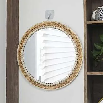 SWTHONY 18 Inch Boho Round Hanging Wall Mirror Decorative Rattan Circle Mirrors for Farmhouse, Living Room, Bedroom